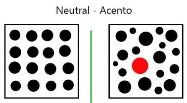 Una técnica que evita el contraste de elementos para lograr poca provocación, por el contrario, el acento busca el realce de un elemento especifico